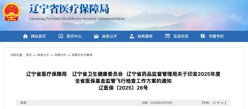 今日(5月19日),遼寧醫保局發布《遼寧省醫療保障局 遼寧省衛生健康委員會 遼寧省藥品監督管理局關于印發2025年度全省醫保基金監管飛行檢查工作方案的通知遼醫保〔2025〕26號》,根據國家醫保局安排,遼寧省醫保局、省衛健委、省藥監局決定2025年繼續在全省范圍內開展醫療保障基金監管飛行檢查。